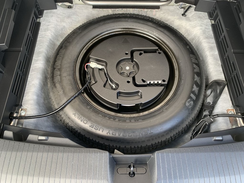 - Spare tire location Spare tire mounted under the cargo floor
